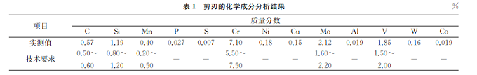 飛剪是重要的軋材剪切設(shè)備,其中剪刃是飛剪設(shè)備中的重要部件,因其工作條件特殊,對飛剪剪刃材料的性能要求非常高,既要有很高的強度、硬度以及耐磨性,也要有一定的韌性。目前,一般使用工模具鋼制造飛剪剪刃。某高速線材軋機在生產(chǎn)過程中,其1#飛剪剪刃發(fā)生斷裂,造成產(chǎn)線緊急檢修并更換剪刃。來自中天鋼鐵集團有限公司的徐旋旋、王小忠、趙宜三位研究人員采用一系列理化檢驗方法對該軋機飛剪剪刃的斷裂原因進行分析,以防止該類問題再次發(fā)生。
