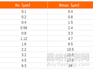 Ra 與Rmax 對(duì)照表: