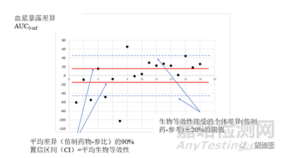 這意味著ABE方法不能保證個(gè)體水平的互換性,因?yàn)榉轮扑幒蛥⒈戎g的暴露量差異可能大于可接受的±20%范圍,與此同時(shí),平均值的差異確實(shí)在這個(gè)區(qū)間內(nèi)。