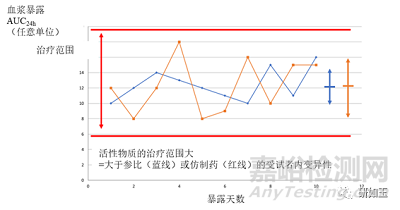 一般來說,治療指數(shù)較窄的藥物受試者內(nèi)變異性較低(CV<30%)。如果不是這樣的話就不能使用。事實(shí)上,如果在同一患者中,治療指數(shù)窄的藥物從一次給藥到另一次給藥的暴露量變化很大,那么誘發(fā)藥物不良反應(yīng)的概率或治療失敗的風(fēng)險(xiǎn)就很重要。