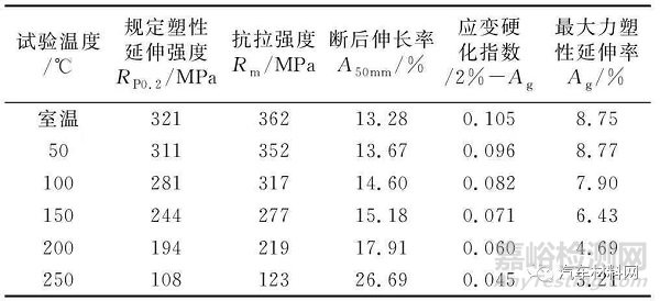 Fig.3 Performance changes of 7003-T6 aluminum alloy at different temperatures