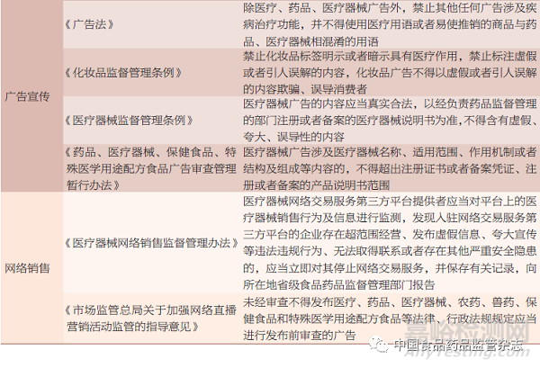 近年來(lái),國(guó)家不斷完善對(duì)大健康交叉產(chǎn)品的監(jiān)管方式和方法,出臺(tái)了一系列政策(表2),在名稱(chēng)管理、廣告宣傳、網(wǎng)絡(luò)銷(xiāo)售等多個(gè)方面嚴(yán)格規(guī)范醫(yī)療器械及其相關(guān)產(chǎn)品的經(jīng)營(yíng)和宣傳行為。總體來(lái)說(shuō),除了進(jìn)一步規(guī)范醫(yī)療器械名稱(chēng)(包括標(biāo)簽和說(shuō)明書(shū))、嚴(yán)格禁止廣告含有虛假、夸大或誤導(dǎo)性的內(nèi)容以外,相關(guān)部門(mén)還對(duì)網(wǎng)絡(luò)銷(xiāo)售新業(yè)態(tài)的監(jiān)管進(jìn)行了探索,例如提出了組織建立國(guó)家醫(yī)療器械網(wǎng)絡(luò)交易監(jiān)測(cè)平臺(tái)、明確限定器械網(wǎng)售范圍、確保第三方平臺(tái)履行責(zé)任[16]、直播營(yíng)銷(xiāo)活動(dòng)中發(fā)布醫(yī)療器械廣告應(yīng)進(jìn)行發(fā)布前審查等規(guī)范[17]。這些政策充分體現(xiàn)了新體制機(jī)制下監(jiān)管部門(mén)對(duì)虛假宣傳和夸大功效、網(wǎng)絡(luò)銷(xiāo)售新業(yè)態(tài)、藥品網(wǎng)絡(luò)交易第三方平臺(tái)等的嚴(yán)格監(jiān)管態(tài)度。