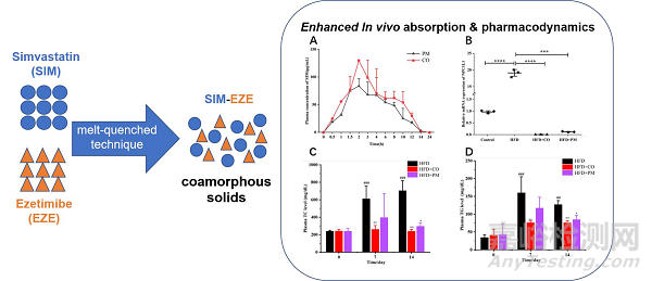 辛伐他汀通常與依折麥布聯(lián)合應(yīng)用于臨床膽固醇降低治療,但它們的溶解度和生物利用度較低。在這個(gè)案例中,辛伐他汀和依折麥布被制備成一個(gè)共無(wú)定型體系,以提高它們的溶解度、生物利用度和穩(wěn)定性等方面的性能。研究人員采用熔融淬火技術(shù)成功制備了共無(wú)定型體系,并對(duì)形成的共無(wú)定型進(jìn)行了表征。結(jié)果顯示,共無(wú)定型體系相比物理混合物具有更好的物理穩(wěn)定性和更快的溶解速率。