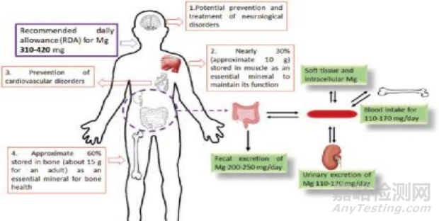 鎂元素在體內(nèi)分布含量以及代謝途徑參考(來源:合義廣業(yè))