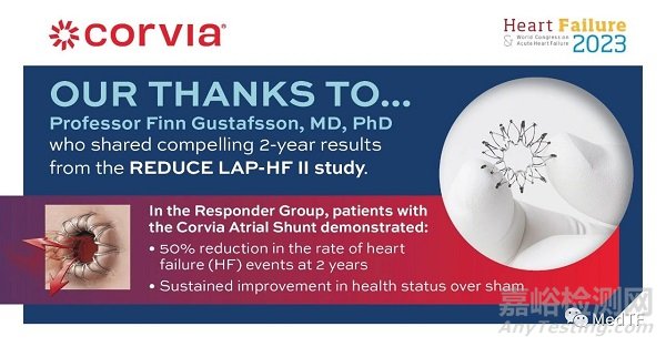 心房分流器領(lǐng)導(dǎo)者Corvia Medical在European Society of Cardiology (ESC) Heart Failure 2023 會(huì)議上公布心房分流器產(chǎn)品---Corvia InterAtrial Shunt Device (IASD)一項(xiàng)臨床研究(REDUCE LAP-HF II)。