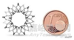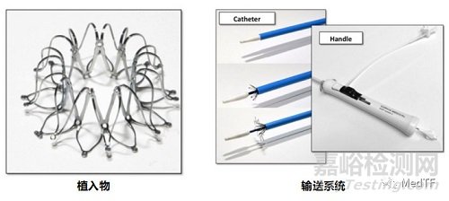 其中植入物是一件類似于自擴(kuò)張的金屬籠,雙盤設(shè)計(jì),中心有一個(gè)開(kāi)口。植入物是具有X射線顯影和超聲反饋,使其在植入過(guò)程能夠通過(guò)影像觀察。植入物的每一側(cè)都有9條腿,并且其中LA側(cè)在每條腿的末端具有顯影設(shè)計(jì)。植入物的LA側(cè)是平坦的,以允許腿與LA壁平齊,從而使植入物展開(kāi)時(shí)LA輪廓最小。右心房側(cè)彎曲以適應(yīng)可變的隔膜壁厚度,僅腿部末端接觸右心房壁。完全擴(kuò)張時(shí)植入物的外徑為19.4mm,內(nèi)徑為8mm。