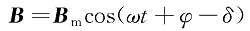 對線圈輸入交流磁化電流,磁感應(yīng)強(qiáng)度B比H落后一個(gè)相角δ,則磁感應(yīng)強(qiáng)度B為: