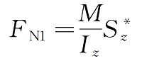 彎矩M引起的正應(yīng)力作用于截出部分左側(cè)面rn上,彎矩M+dM引起的正應(yīng)力作用于右側(cè)面pn1上,頂面pr受到切應(yīng)力τ′,3種應(yīng)力都平行于x軸。由右側(cè)面pn1所受正應(yīng)力σ組成的合力FN2為: