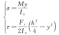 矩形截面材料彎曲狀態(tài)下正應(yīng)力σ與切應(yīng)力τ可表示為: