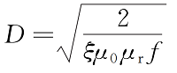 式中:D為檢測深度;ξ為材料電導(dǎo)率;μ0為真空磁導(dǎo)率;μr為材料相對磁導(dǎo)率;f為交流激勵頻率。