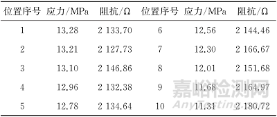 為避免材料不均勻性、鋼板自重及其他因素帶來的影響,對不受外力影響時(shí)各位置的阻抗進(jìn)行測量,結(jié)果如表4所示。