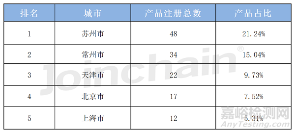 截至2022年12月31日,外固定支架國產(chǎn)產(chǎn)品注冊排名第一的是蘇州市,產(chǎn)品注冊數(shù)為48件。