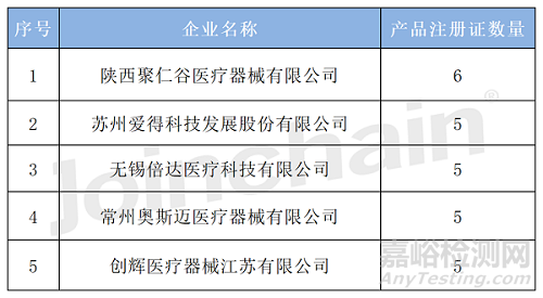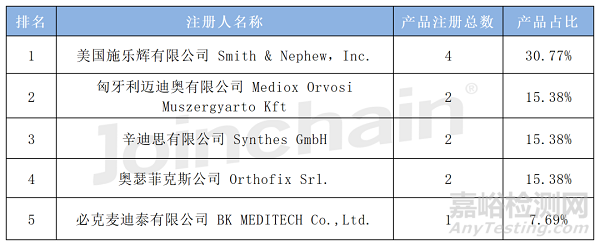 圖表5 外固定支架所屬注冊人情況(TOP5)