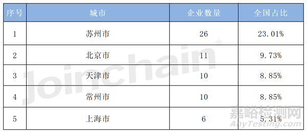 從區(qū)域分布來看,蘇州市可生產(chǎn)外固定支架的生產(chǎn)企業(yè)數(shù)排名第一,有26家。