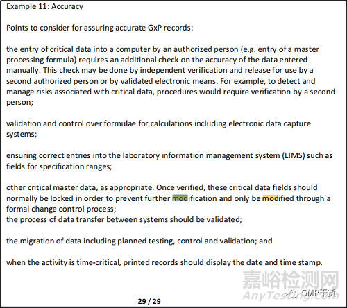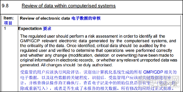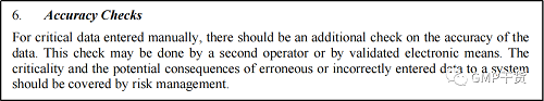 2011年發(fā)布的歐盟GMP附錄11《計(jì)算機(jī)化系統(tǒng)》并沒有提及此類情形,只是要求檢查數(shù)據(jù)的準(zhǔn)確性,并且需要在風(fēng)險(xiǎn)評(píng)估中評(píng)估錯(cuò)誤輸入數(shù)據(jù)的風(fēng)險(xiǎn)。