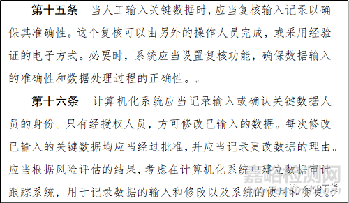 2015年NMPA發(fā)布的GMP附錄《計(jì)算機(jī)化系統(tǒng)》中規(guī)定:只有經(jīng)過授權(quán)的人員方可修改已輸入的數(shù)據(jù),每次修改已輸入的關(guān)鍵數(shù)據(jù)應(yīng)當(dāng)經(jīng)過批準(zhǔn),并記錄修改的理由。這項(xiàng)規(guī)定也不能給出本文問題的答案。
