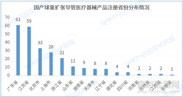 2.5 國(guó)產(chǎn)球囊擴(kuò)張導(dǎo)管醫(yī)療器械產(chǎn)品注冊(cè)省份分布情況