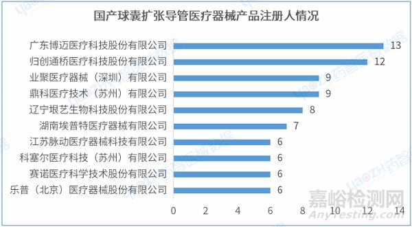 2.6 國(guó)產(chǎn)球囊擴(kuò)張導(dǎo)管醫(yī)療器械產(chǎn)品注冊(cè)人情況(top10)