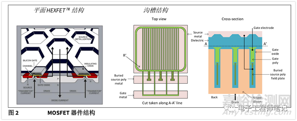 構(gòu)成 MOSFET 管芯的硅的不同摻雜方式將 MOSFET 分成兩個技術(shù)大類,,即平面型和溝槽型,如 圖 1 所示。