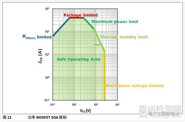 現(xiàn)代功率 MOSFET 的發(fā)展聚焦在在具有超低 RDS(on) 的快速開關(guān)上,因此減小管芯面積已成為發(fā)展趨勢。因此,特定 RDS(on) 器件的功率承載能力普遍下降,特別是在線性工作模式下(在飽和區(qū))。在設(shè)計功率MOSFET(或任何其他類型的功率晶體管)時,必須密切關(guān)注 SOA 圖,并確保該器件永遠不會在所定義的極限線之外工作。如果超出了這些限制,可靠的設(shè)計是不可能實現(xiàn)的!