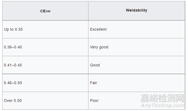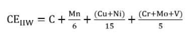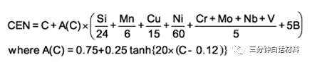為適應更廣泛種類的鋼材,提出的CEN公式來評價各種鋼的焊接性。對于高碳范圍,CEN值與碳當量如CEIIW很好地相關,而對于低碳鋼,其值接近于CEq公式。CEN由: