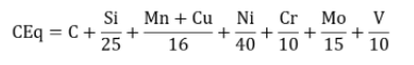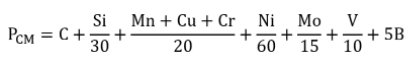 Pcm和CEq公式都是針對CEIIW不太適用的低碳鋼而開發(fā)的。Pcm通常用于碳含量不超過0.11wt%的管道制造用現(xiàn)代鋼。然而應該注意的是,Pcm公式主要是從低碳低合金鋼中推導出來的。