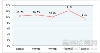 2022年抽查的安全技術防范產品包括安全帶、安全帽、安全網、保護足趾安全(防護)鞋、電子門鎖、非醫(yī)用口罩、鎖具、危險化學品包裝物、手提式干粉滅火器等9種產品,共抽查882家企業(yè)生產的903批次產品,抽查不合格率為14.3%。其中非醫(yī)用口罩、電子門鎖、危險化學品包裝物不合格率較高,分別為29.4%、17.1%、15.2%,其余產品不合格率均低于10.0%。