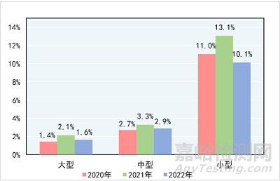 圖2 近三年大中小型企業(yè)產品國家監(jiān)督抽查不合格率對比圖