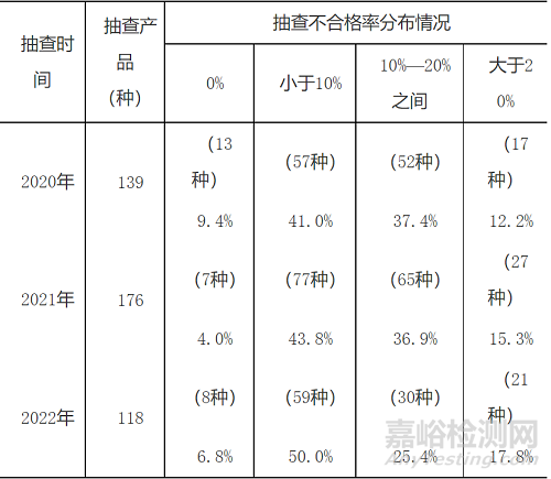 表1 近三年國家監(jiān)督抽查不合格率分布情況表