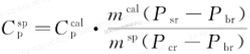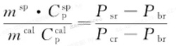 式中:P—熱流速率(dQ/dt);上標(biāo)sp和cal分別表示試樣和校準(zhǔn)物質(zhì);下標(biāo)sr、cr和br分別表示試樣的熱流速率、校準(zhǔn)試驗(yàn)的熱流速率和空白試驗(yàn)的熱流速率。由于Cpcal,msp和mcal是已知的,測(cè)得Pst,Pcr和Phr后,便可用下面兩個(gè)公式計(jì)算Cpcal。