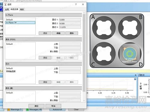 ③定義材料名稱,輸入樣品厚度,選擇所用支架(注意調(diào)用①中定義的支架)。