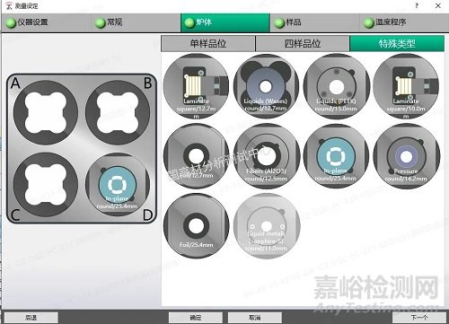 ②爐體選項(xiàng)中選擇“In-Plane round/25.4mm”,拖至樣品架位置(A、B、C或D)。如圖9所示,點(diǎn)擊下一步。