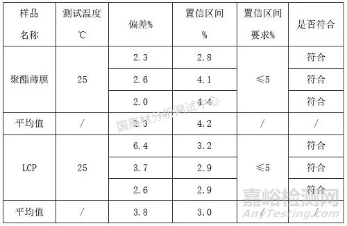 由圖可知,聚酯薄膜最大誤差為1.8%,最小偏差為0.5%。LCP最大誤差為1.4%,最小偏差為0.6%,滿足熱擴(kuò)散系數(shù)誤差在±2%以內(nèi)的要求,結(jié)果準(zhǔn)確性高。