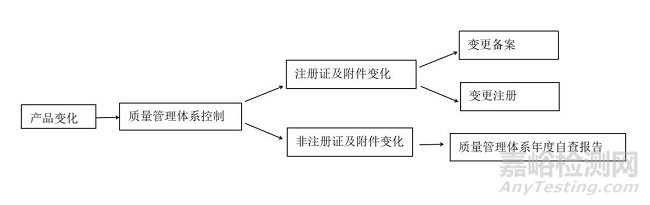 體外診斷試劑發(fā)生變化均應(yīng)通過質(zhì)量管理體系進行控制,如涉及醫(yī)療器械注冊證及其附件載明的內(nèi)容發(fā)生變化,需進行變更備案或變更注冊(圖1)。