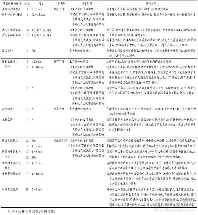 表2 無(wú)菌工藝模擬試驗(yàn)干預(yù)操作選擇[7]