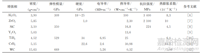表1 銅基復(fù)合材料中常用增強(qiáng)相的基本性能
