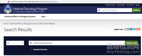 1)搜索網(wǎng)址:https://manticore.niehs.nih.gov/cebssearch ,輸入化合物CAS號(hào)或英文名稱搜索。