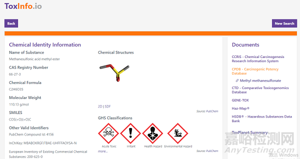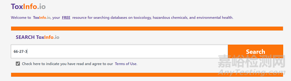 1)搜索網(wǎng)址:https://www.toxinfo.io/進(jìn)入,在搜索框中輸入化合物CAS號(hào)或英文名稱。