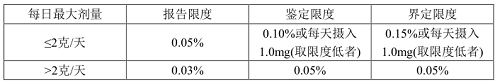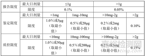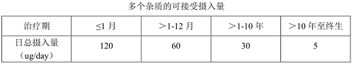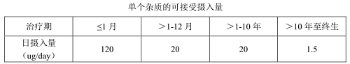 2.已具有可接受攝入限度的特定化合物(1類),不應(yīng)計(jì)入2類和3類雜質(zhì)總限度。