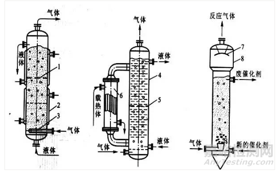 ③有固體顆粒床層的反應(yīng)器。氣體或(和)液體通過固定的或運(yùn)動的固體顆粒床層以實(shí)現(xiàn)多相反應(yīng)過程,包括固定床反應(yīng)器、流化床反應(yīng)器、移動床反應(yīng)器、涓流床反應(yīng)器等。