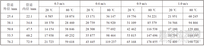 表3 不同管徑、流速、溫度下的雷諾數(shù)