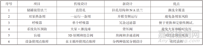 上述設(shè)計溫度、流速是基于風(fēng)險分析基礎(chǔ)上更適合工藝的精準(zhǔn)設(shè)計策略,在工程設(shè)計中通過對系統(tǒng)部件進(jìn)行合理的設(shè)計和選型,最大限度降低運(yùn)行問題和微生物風(fēng)險,做了對比分析,具體見表4。