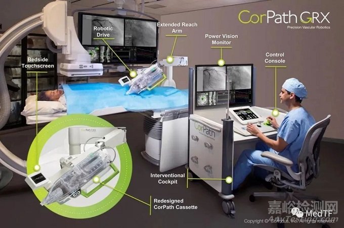 2023年6月1日,西門子的血管介入機器人獲NMPA批準上市,是國內(nèi)第二款批準上市的血管介入機器人---CorPath GRX。其在國內(nèi)獲批預期用途“冠狀動脈介入手術控制系統(tǒng)和一次性使用冠狀動脈介入手術控制系統(tǒng)附件配套使用,輔助臨床醫(yī)生在經(jīng)皮冠狀動脈介入手術期間,輸送和操作導絲、導引導管或者快速交換球囊擴張導管/支架。”