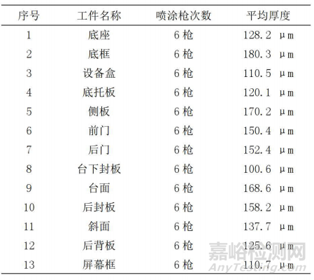 噴塑完成后,對(duì)各工件噴塑面隨機(jī)抽取6個(gè)點(diǎn)測(cè)量厚度,如圖4所示。