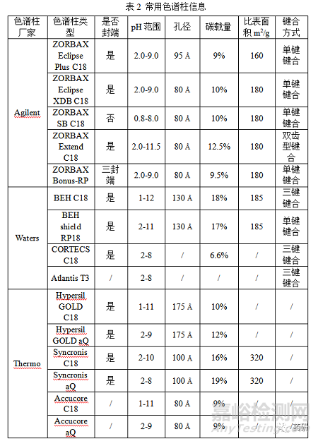 值得一提的是,Hypersil GOLD HILIC色譜柱和Syncronis HILIC色譜柱都有極性鍵合相,而Waters公司的BEH/CORTECS/Atlantis HILIC色譜柱及Agilent公司的ZORBAX/Poroshell 120 HILIC色譜柱均為未鍵合的硅膠顆粒,從而顯示出不同的選擇性。