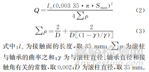 為了預(yù)測(cè)軸承心部的承載能力,對(duì)最大許用靜載荷條件下軸承心部承受的最大剪切應(yīng)力τ進(jìn)行計(jì)算,其計(jì)算公式為