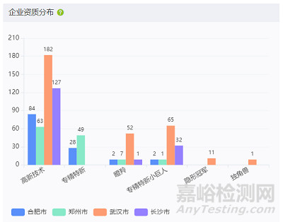 從企業(yè)資質分布看,截止到2023年5月,在生物醫(yī)藥產業(yè)領域,合肥市、鄭州市、武漢市、長沙市的高新技術企業(yè)分別有84、63、182、127家,專精特新企業(yè)分別有28、49、0、0家,瞪羚企業(yè)分別有2、7、52、1家,專精特新小巨人企業(yè)分別有2、1、65、32家,隱形冠軍企業(yè)分別有0、0、11、0家。獨角獸企業(yè)分別有0、0、1、0家。