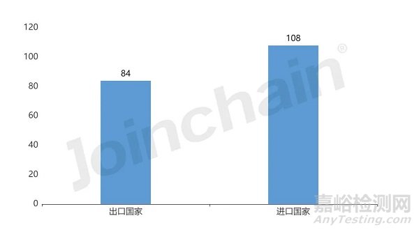 圖表2 2022年度進(jìn)出口助聽器國家數(shù)量