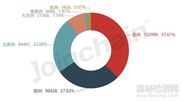 圖表4 2022年度各洲際助聽器進(jìn)口貿(mào)易次數(shù)(單位:次)及占比情況