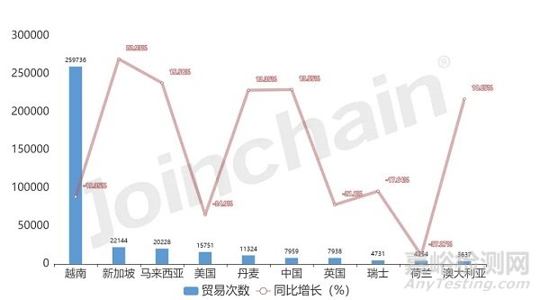 圖表6 2022年度助聽器進(jìn)口貿(mào)易次數(shù)TOP10國家